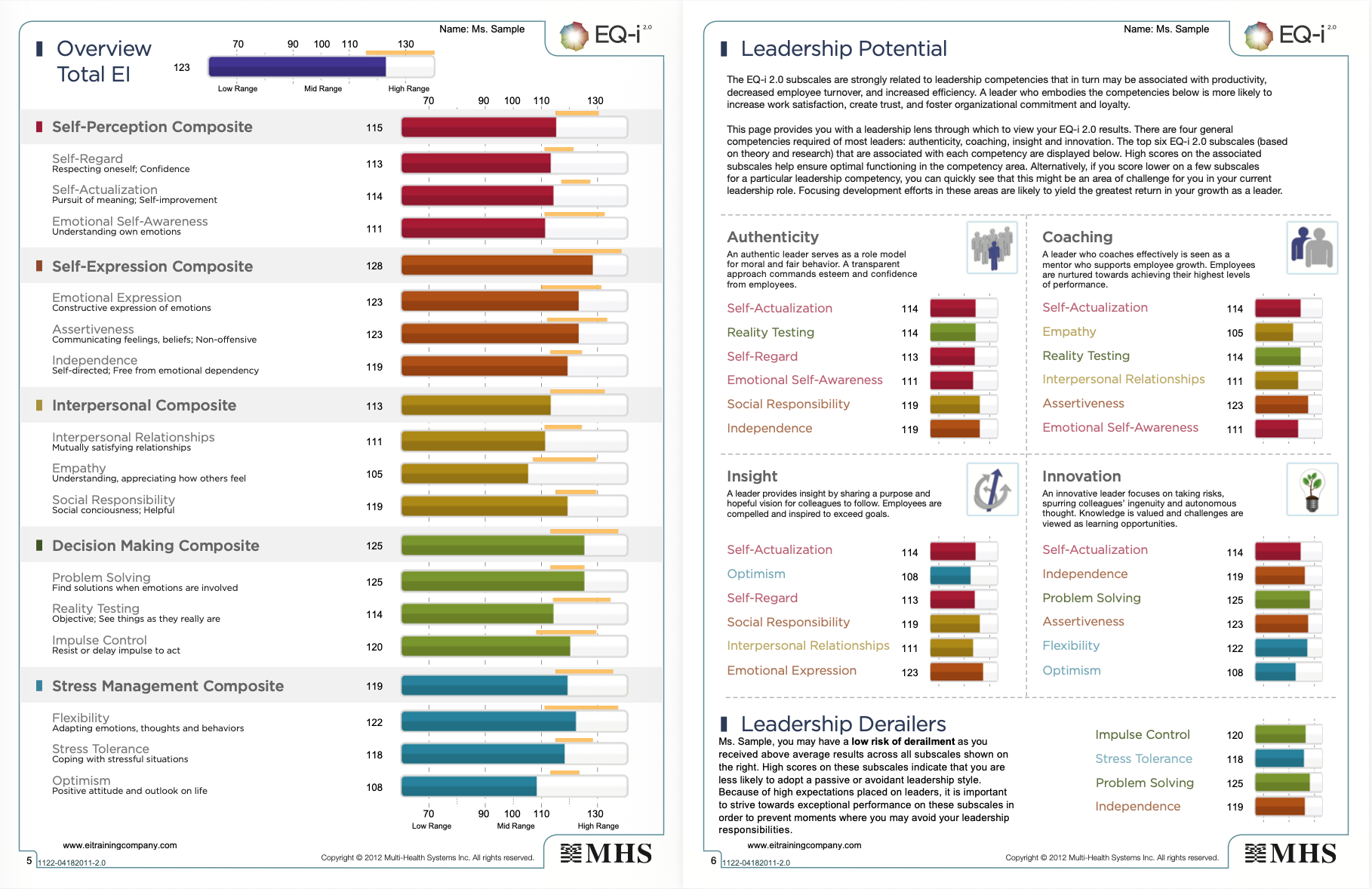 The report covers 5 key composite areas and 15 emotional intelligence subscales: